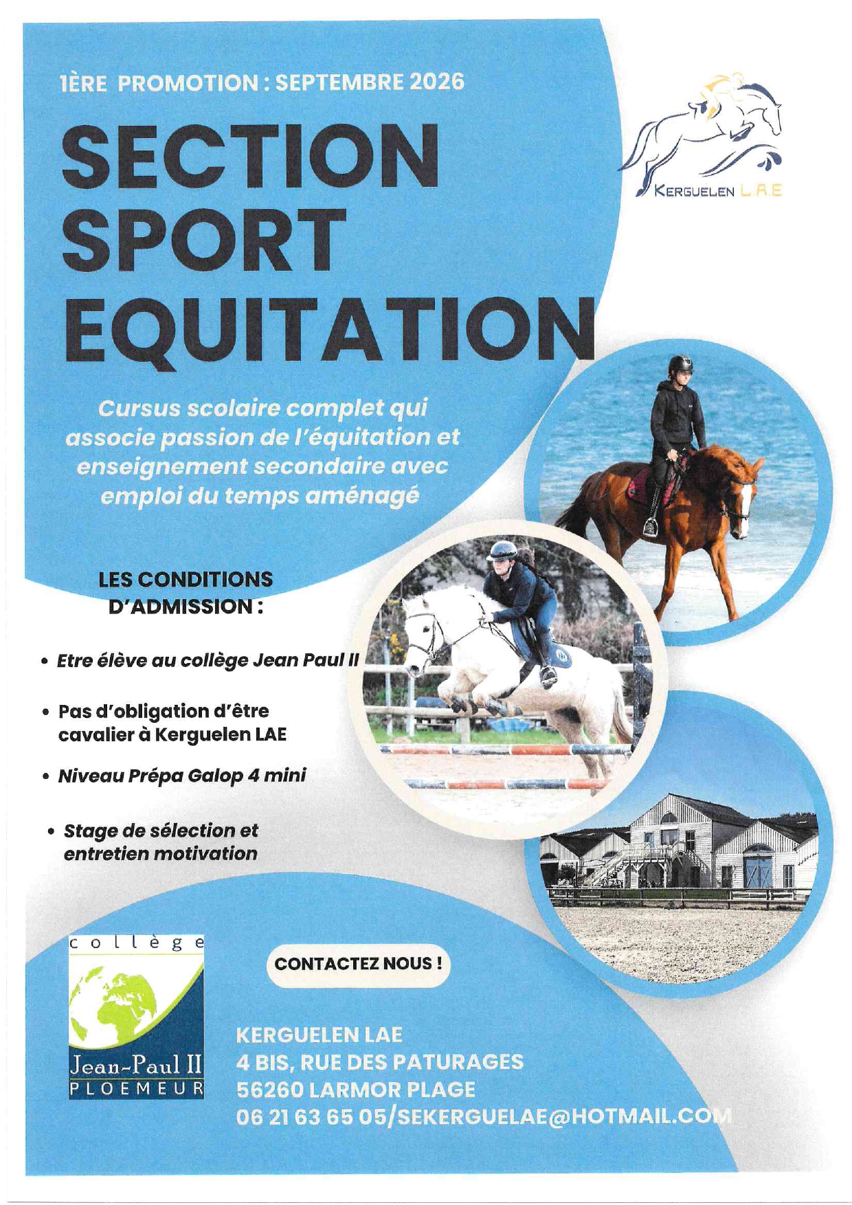 Section sport équitation : Partenariat avec le centre équestre de KERGUELEN LAE